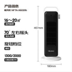 格力/GREE NFTA-X6020b 取暖器 【远距送暖】取暖器家用暖风机电暖器热风机电暖气摇头电暖风电暖扇轻音低耗 NFTA-X6020b