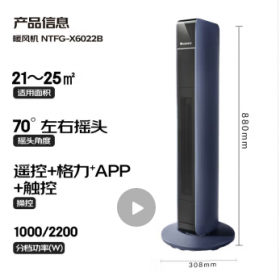 格力/GREE NTFG-X6022B 取暖器 【全能暖风机】石墨烯速热取暖器电暖器电暖气片家用冷暖热风机WIFI互联塔式暖风机
