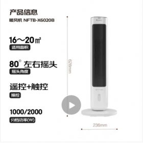 格力/GREE NFTB-X6020B 取暖器 【80°广角送暖】取暖器家用暖风机电暖器热风机电暖气摇头电暖风电暖扇轻音低耗