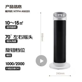 格力/GREE NTFH-X6020 取暖器 【广角送暖】取暖器家用暖风机电暖器热风机电暖气摇头电暖风电暖扇轻音低耗