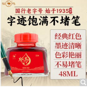 鸵鸟 224 墨水/补充液/墨囊 墨水3系钢笔墨水不堵笔速干可擦蓝黑色碳素红色非碳素墨囊硬笔办公档案用55ml 224纯红 色泽艳丽