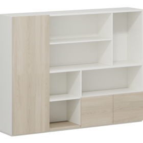 安格佳 HSSDKDY-CAC-2015 文件柜 生态板书柜组合 组合文件柜 文件柜 尺寸2050W*400D*1565H 办公室文件柜 生态板背柜 生态板文件柜 书柜 资料柜 维也蜡木+进口暖白
