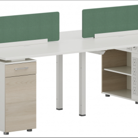 安格佳 HSSDKDY-WTB2-1414 办公桌 二人工位 屏风 2人位 职员桌 现代简约 胶板大班台 胶板主管桌 2人办公桌 工作桌 (抽屉带侧面锁) 尺寸 1400W*1408D*750H 进口暖白台面