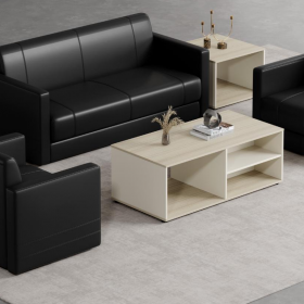 安格佳 KJT924-KRSF13 三人沙发 尺寸 1800*790*810 黑色牛皮/西皮 黑色金属沙发脚 办公室沙发 接待沙发 三人位西皮