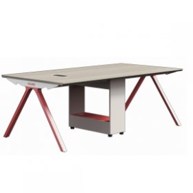 安格佳 KJSQ-KBHT24 会议桌 尺寸 2400W*1200D*750H 大型会议桌 板油会议桌 会议台 板油长条桌 北美白橡+奶油白+暗砖红