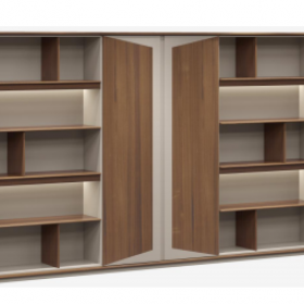 安格佳 KJKY-KMWJ36 文件柜 板油书柜组合 组合文件柜 文件柜 尺寸 3600W*400D*2000H 办公室文件柜 油漆背柜 油漆文件柜 书柜 资料柜 天然直纹胡桃+深卡其