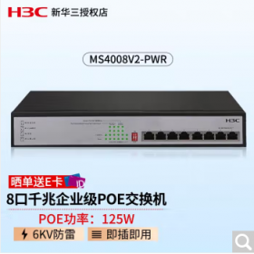 新华三/H3C MS4008V2-PWR 以太网交换机 企业级千兆8口POE交换机 MS4008V2-PWR 网络安防监控POE交换机 防雷 即插即用 poe功率125W
