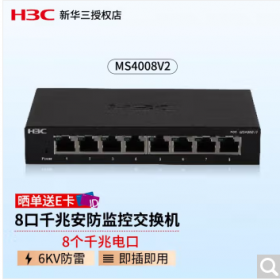新华三/H3C MS4008V2 以太网交换机 MS4008V2 企业级网络安防监控8口交换机千兆 6KV防雷 非网管即插即用 网络分线器