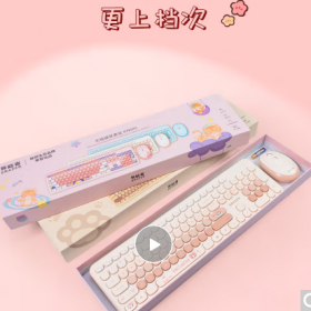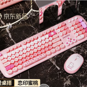 联想/LENOVO KN520 键盘 异能者 无线键鼠套装 圆润键帽 台式机/小新笔记本适用 女生礼物 键盘鼠标无线 恋印蜜桃粉