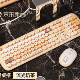 联想/LENOVO KN520 键盘 异能者 无线键鼠套装 圆润键帽 台式机/小新笔记本适用 女生礼物 键盘鼠标无线 流光奶茶色
