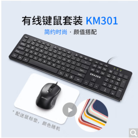 联想/LENOVO KM301 键盘 异能者 有线键盘鼠标套装 键鼠套装鼠标垫 全尺寸防泼溅 商务办公台式机/小新笔记本适用 黑色