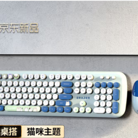 联想/LENOVO KN521 键盘 异能者 无线键鼠套装 圆润键帽 台式机/小新笔记本适用 女生礼物 键盘鼠标无线 猫耳奶茶白