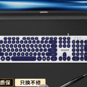 [克隆商品] 联想/LENOVO K302 键盘 异能者 有线键盘圆键帽商务办公键盘有线 全尺寸键盘即插即用 台式机/小新笔记本键盘 蓝白