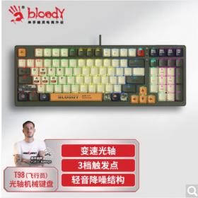 双飞燕/A4tech T98 键盘 T98 98键有线机械键盘 血手幽灵变速光轴轻音按键PBT键帽笔记本电脑游戏电竞键盘 飞行员