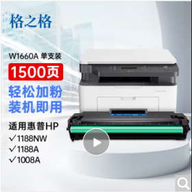 格之格 166a 硒鼓 w1660a硒鼓适用惠普1008a硒鼓 hp1188w 1188nw 1188pnw 1136w 1008w打印机超大容量带芯片