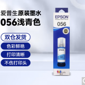爱普生/EPSON 056LC 墨水/补充液/墨囊 原装056墨水L8058 L18058喷墨打印机墨水 彩色6色墨汁 墨盒 爱普森墨水补充装 056LC 【浅青/浅蓝色】