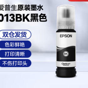 爱普生/EPSON 013BK 墨水/补充液/墨囊 原装墨水L8168 L8188 喷墨打印机原厂墨汁 黑色颜料染料爱普森墨盒 013BK 【普通黑】