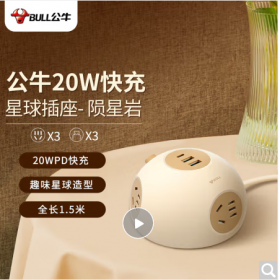 公牛/BULL GNV-U1203Q 插座 20W PD苹果快充星球插座/插线板/插排/排插/拖线板 半球型 3个五孔+3个USB GNV-U1203Q 陨星岩