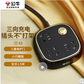 公牛/BULL GNV-U103Q 插座 星球星际插座/插线板/插排/排插/拖线板 半球型 3位总控 全长1.5米 GNV-U103Q 熊猫黑