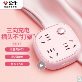 公牛/BULL GN-R6030 插座 插座/插线板/插排/排插/拖线板 复古插座 3位总控 全长1.5米 GN-R6030 樱花粉