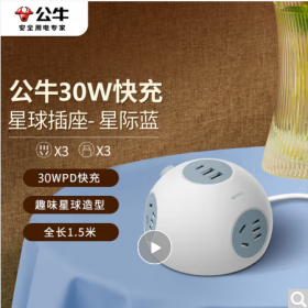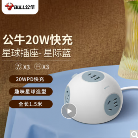 公牛/BULL GNV-U1303Q 插座 30W PD快充星球星际插座/插线板/插排/排插/拖线板 半球型 3个五孔+3个USB GNV-U1303Q 星际蓝