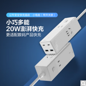 公牛/BULL GNV-MC1203M 插座 氮化镓20W快充插座/桌面充电站/桌面插座/多功能USB插线板便携插排小电舱安全快充 2C2A+3插孔白色
