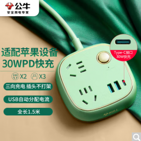 公牛/BULL GN-R602U30 插座 30W PD快充插座/插线板/插排/排插/拖线板 复古插座 3usb接口+2位五孔 全长1.5米