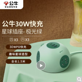 公牛/BULL GNV-U1303Q 插座 30W PD快充星球星际插座/插线板/插排/排插/拖线板 半球型 3个五孔+3个USB GNV-U1303Q 极光绿