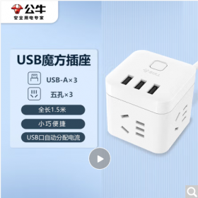 公牛/BULL GN-U303U 插座 魔方智能USB插座 插线板/插排/排插/接线板/拖线板 GN-U303U 白色魔方总控开关USB插座