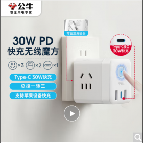公牛/BULL GNV-M1303W 插座 公牛(BULL)30WPD苹果快充魔方插座/插线板/插排/接线板 Type-c口+USB口+3插孔 无线 白色