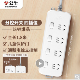 公牛/BULL B3043 插座 分控插座/插线板/插排/排插/接线板/拖线板 4位分控全长1.8米 独立开关