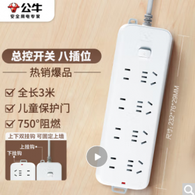 公牛/BULL GN-B3440 插座 插座/插线板/插排/排插/接线板/拖线板 8位总控开关全长3米
