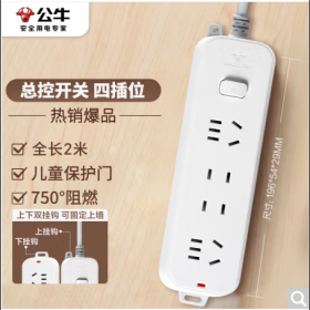 公牛/BULL GN-B2040 插座 新国标插座/插线板/插排/排插/接线板/拖线板 4位总控开关全长2米