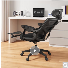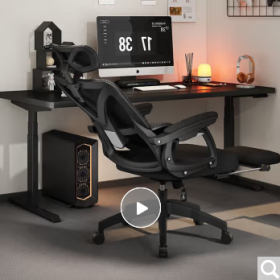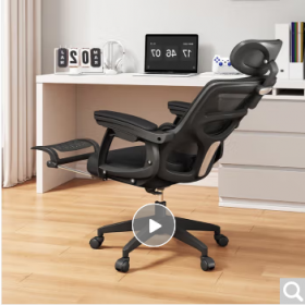 国景 YPHW258 办公椅 办公椅子 体工学椅办公座椅可躺电脑椅家用舒适久坐午休工程游戏电竞椅子 三代-黑框黑-3级气杆+搁脚 120-155度(含) 联动扶手