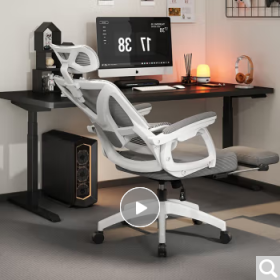 国景 YPHW258 办公椅 办公椅子 人体工学椅办公座椅可躺电脑椅家用舒适久坐午休工程游戏电竞椅子 三代-白框灰-3级气杆+搁脚 120-155度(含) 联动扶手