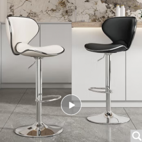 国景 YPH945 桌前椅 吧台椅子家用吧椅现代简约酒吧椅可升降高脚收银前台凳子轻奢靠背 高款-黑色牛皮-不锈钢