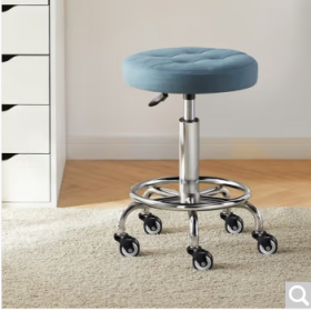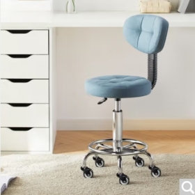 国景 YPH921 桌前椅 吧台椅升降酒吧椅子家用靠背凳前台滑轮椅美容理发座椅实验室转椅 【三级气杆】科技布蓝色+靠背 升级万向轮款