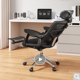 国景 YPHW500 办公椅 办公椅子 人体工学椅电脑椅家用可躺椅子办公椅书桌转椅学习电竞椅老板椅 二代135°可躺-黑-脚托-尼龙脚