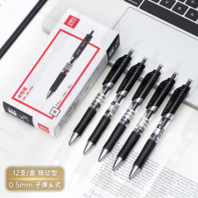 得力/deli S01 书写用笔类用具 中性笔签字笔 0.5mm子弹头经典办公按动笔水笔 黑色 12支/盒.