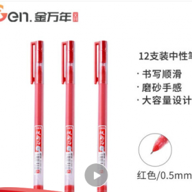 金万年/GENVANA G-0018-003 书写用笔类用具中性笔办公会议教学通用 考试专用水笔 12支/盒 文具笔尖0.5mm经典红色G-0018-003.