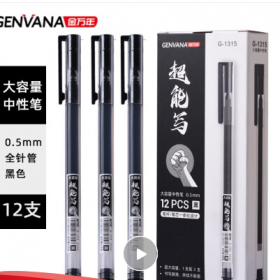 金万年/GENVANA G-1315-001 书写用笔类用具 中性笔大容量 全针管速干水笔 便携签字笔 0.5mm直液式储墨 经典黑色12支/盒G-1315-001.
