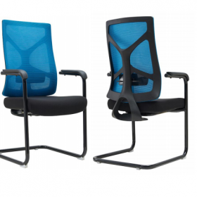 国景 XQN808C1 办公椅 办公椅子 尺寸 75*38*63 网椅 会议椅 学习椅 弓形椅 主管椅 黑框 全黑色 蓝背黑座