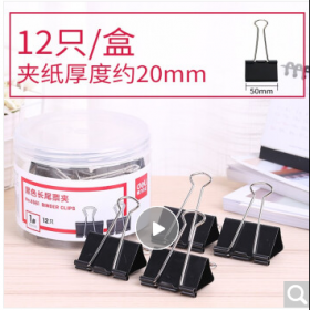得力/deli 8561长尾夹 黑色长尾夹大中小号票夹盒装燕尾夹 50mm(12只)
