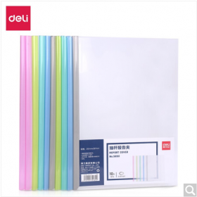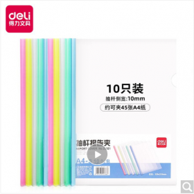 得力/deli 33321文件夹10只A4透明拉杆夹 彩色抽杆报告夹简历夹文件资料夹 5色装33321