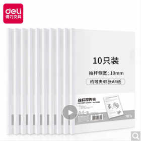 得力/deli 33223文件夹10只A4透明抽杆文件夹拉杆夹 简历报告夹资料夹白色