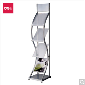 得力/deli 9309置物架四层金属流线型报刊杂志架书刊架 宣传册展示架 办公室落地资料架 高1.45米9309