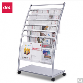 得力/deli 9303置物架七层铝合金夹条报纸架报刊架报夹条 宣传杂志展示架 图书馆置物架 高1.08米