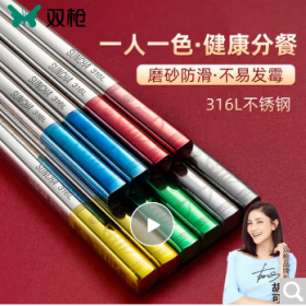 双枪/Suncha S316L筷不锈钢筷子家用分类筷 防霉防滑耐高温公筷专筷多色分筷餐具套装五彩中国结