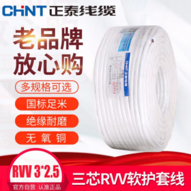 正泰/CHINT ZT3251 数据线 护套线电源线空调电线纯铜线国标铜芯 BVVB 3芯2.5平方 1米