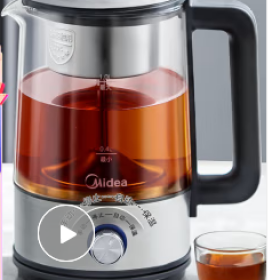 • 美的/Midea MK-C10-Pro1 壶 养生壶净醇1L大容量智能复古喷淋式煮茶器煮茶壶烧水壶 电热水壶玻璃花茶壶养生壶MK-C10-Pro1